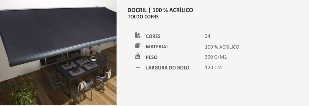 Toldo produzido com cofre para proteção do tecido.